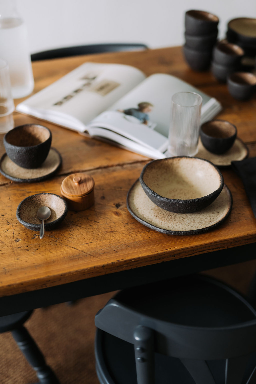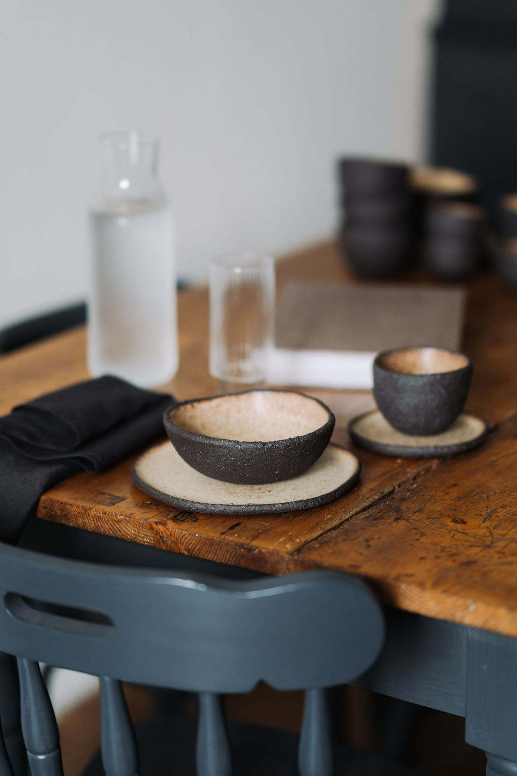Bol cu margine neregulata realizat manual din gresie ceramica neagra de tip terrazzo. Forma organica, neregulata.