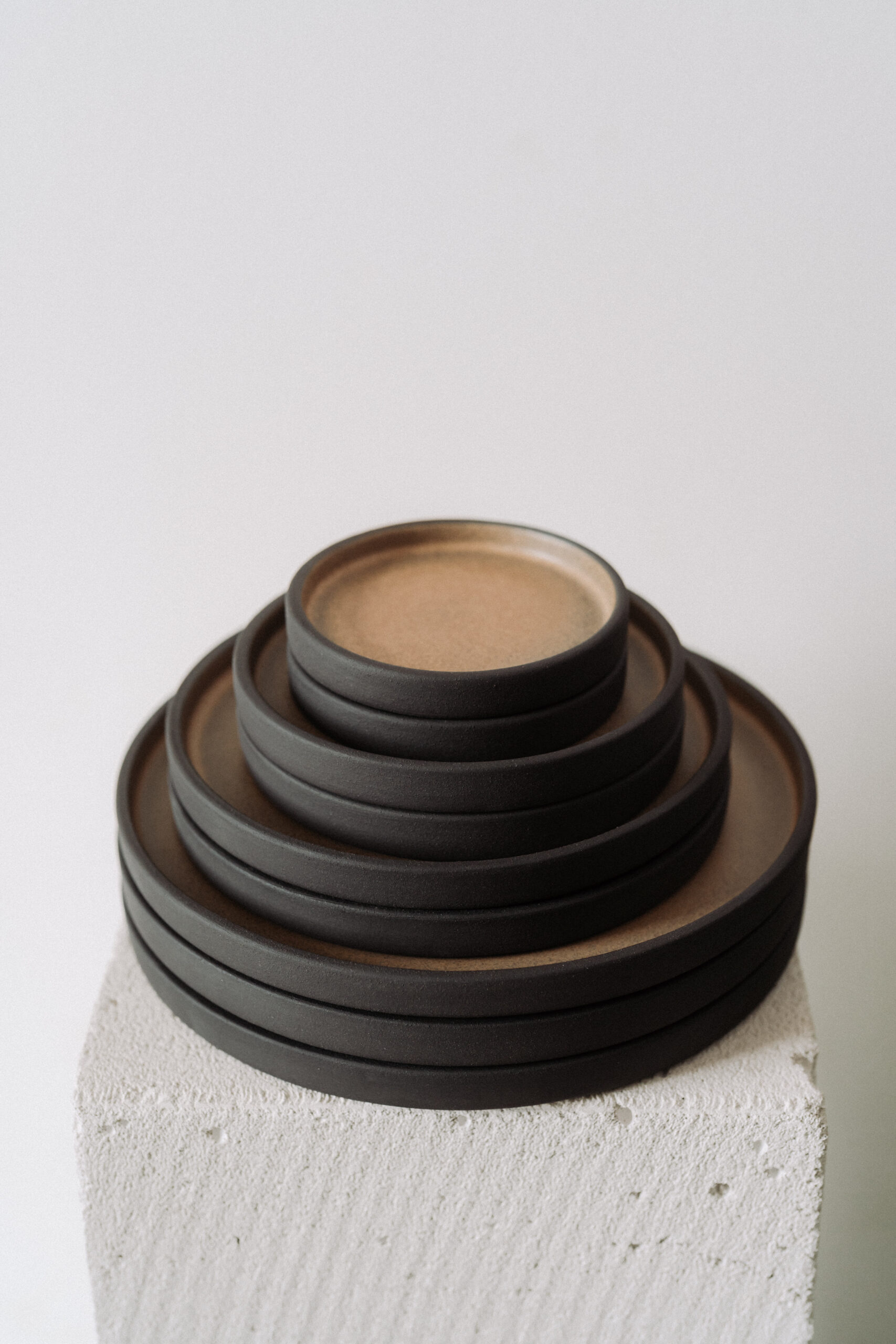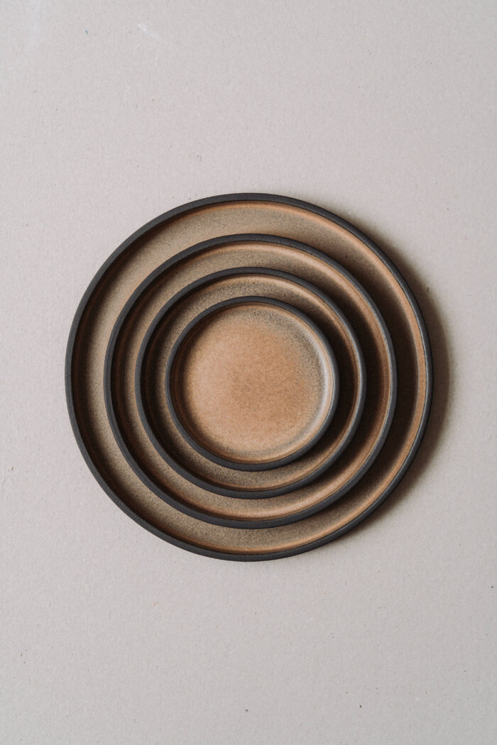 Farfurie cu buza inalta realizata manual din gresie ceramica neagra. Glazurata doar pe interior.